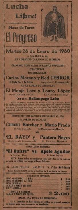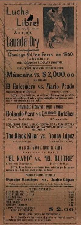 Sources disagree if this was Pancho Ramirez vs Indio Lopez or Carnicero Butcher vs Apolo Aguilar