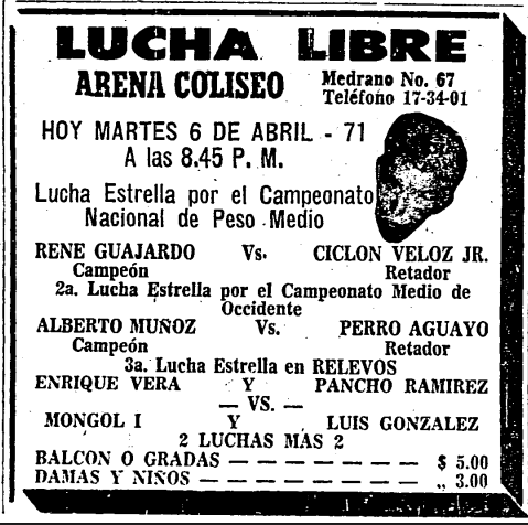 EMLL (SUN) 04/11/1971 Arena Coliseo Guadalajara [El Informador 1971-04-11]