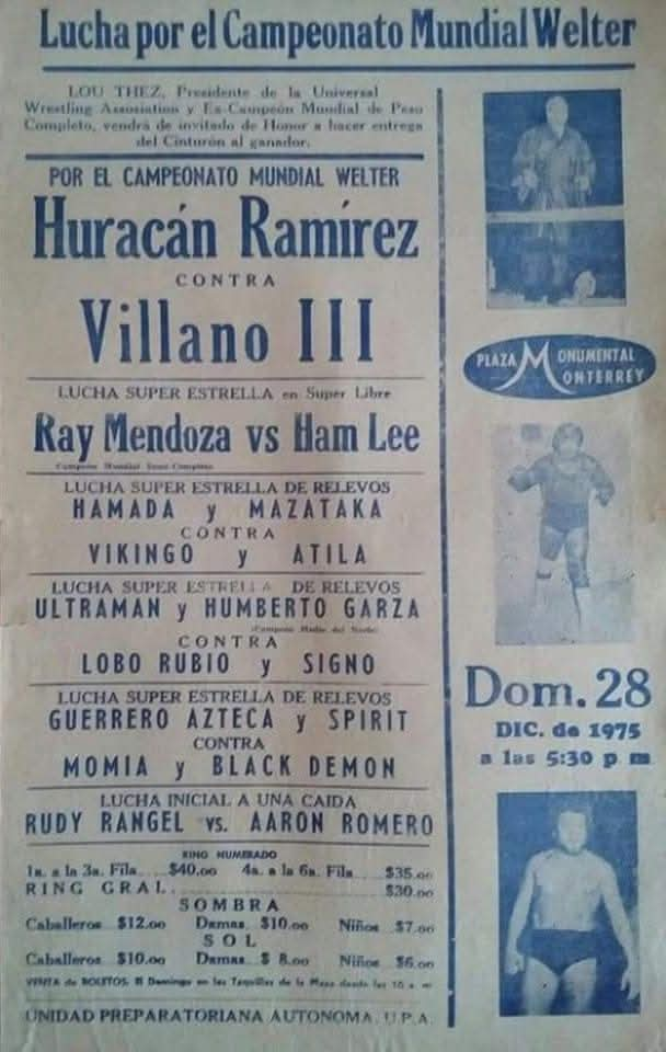 DdN (SUN) 12/21/1975 Plaza de Toros La Monumental, Monterrey, Nuevo León [Halcon 182]