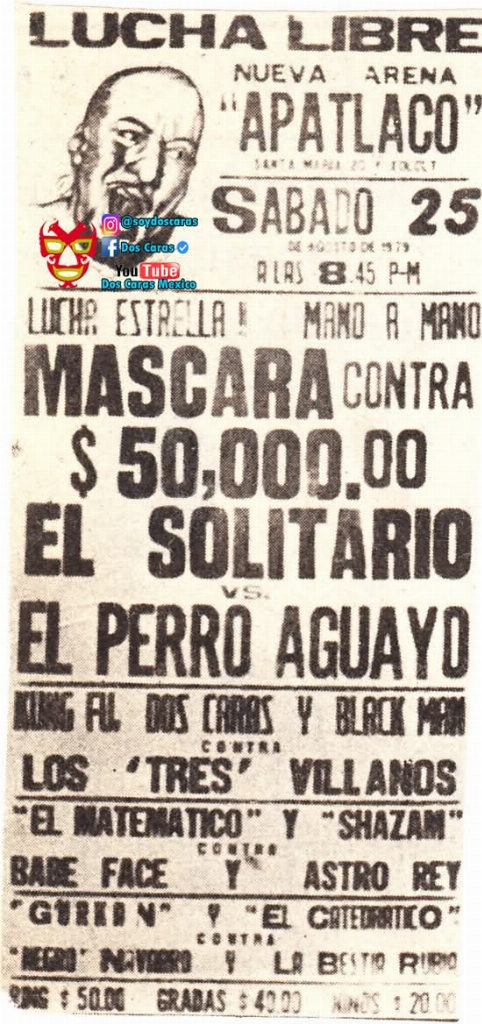 Solitario’s mask versus 50,000 pesos from Perro aguayo