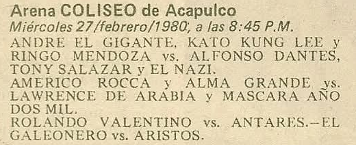EMLL (WED) 02/27/1980 Arena Coliseo Acapulco, Acapulco, Guerrero [@mattfarmer]