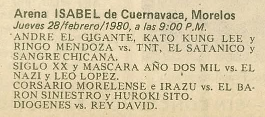 EMLL (THU) 02/28/1980 Arena Isabel, Cuernavaca, Morelos [Box y Lucha 1426]