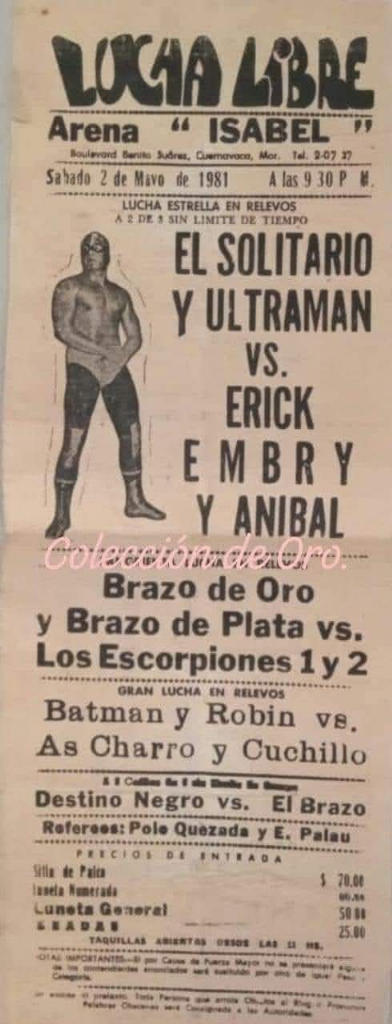 MORA (SUN) 05/17/1981 Toreo de Cuatro Caminos, Naucalpan, Estado de México [SuperLuchas]