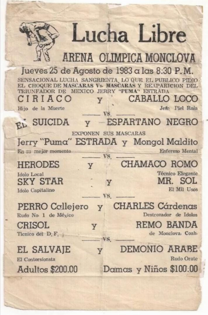 MORA (SUN) 08/14/1983 Plaza de Toros Alberto Balderas, Ciudad Juárez, Chihuahua [Box y Lucha]