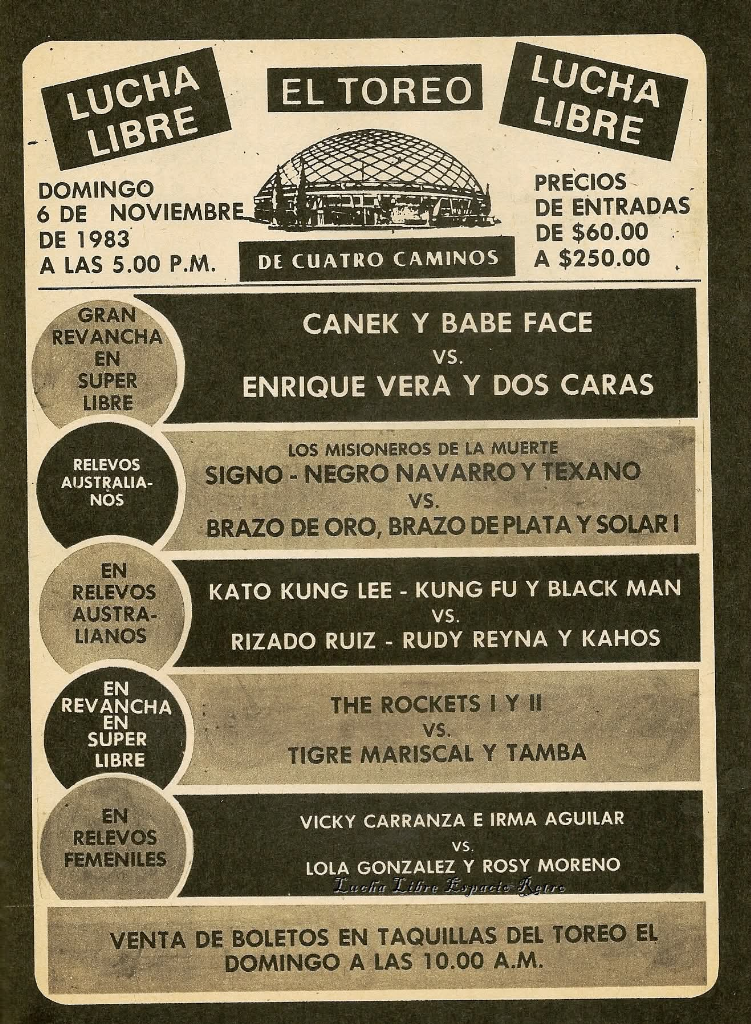 MORA (SUN) 11/27/1983 Toreo de Cuatro Caminos, Naucalpan, Estado de México [Arena 1318, Box y Lucha 1617, Box y Lucha 1618, Matt Farmer]