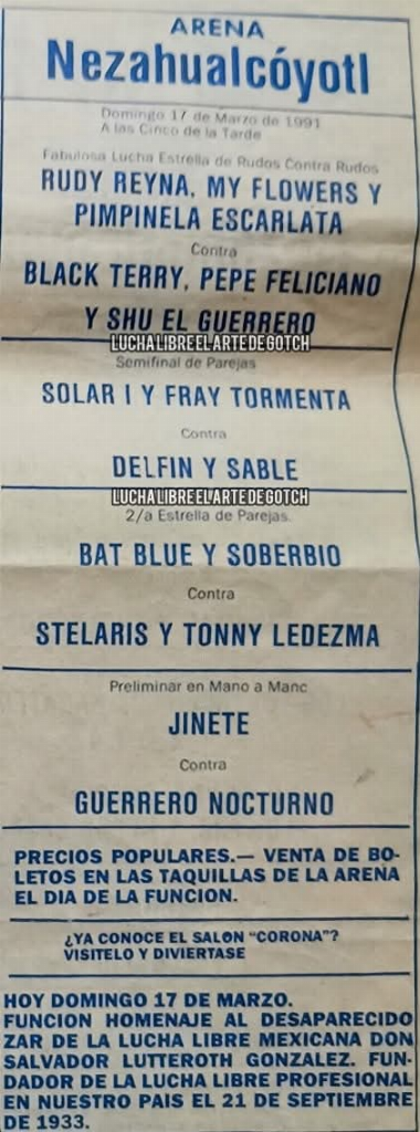 LLI (SUN) 03/17/1991 Toreo de Cuatro Caminos, Naucalpan, Estado de México [RB, RL, WON 1991-04-08]