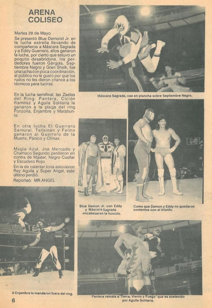 5) Blue Demon, Eddy Guerrero, Máscara Sagrada b Gargola El Sultan, Gran Sheik, Septiembre Negro