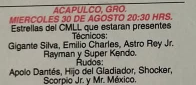 CMLL (WED) 08/09/2000 Acapulco, Guerrero [Box y Lucha, RL]