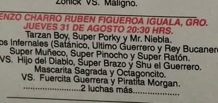 4) Hijo del Lizmark, Mr. Niebla, Olímpico b Rey Bucanero, Satánico, Último Guerrero *
