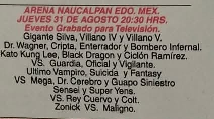 Event Notes: benefit show for Ministro de la Muerte I (injury)