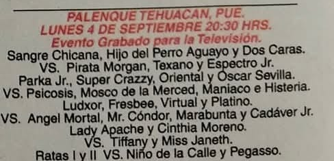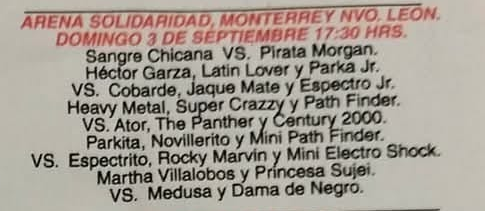1) Histeria, Maniaco, Mosco De La Merced AAA, Psicosis II DCO Espíritu, Nygma, Picudo, Súper Crazy *