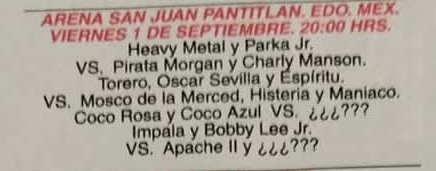4) Canek, La Parka Jr., Torero vs El Cobarde, Pirata Morgan, Toro Irisson