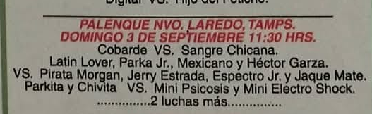 4) Héctor Garza, La Parka Jr., Latin Lover, Mexicano vs Espectro Jr., Jaque Mate, Jerry Estrada, Pirata Morgan