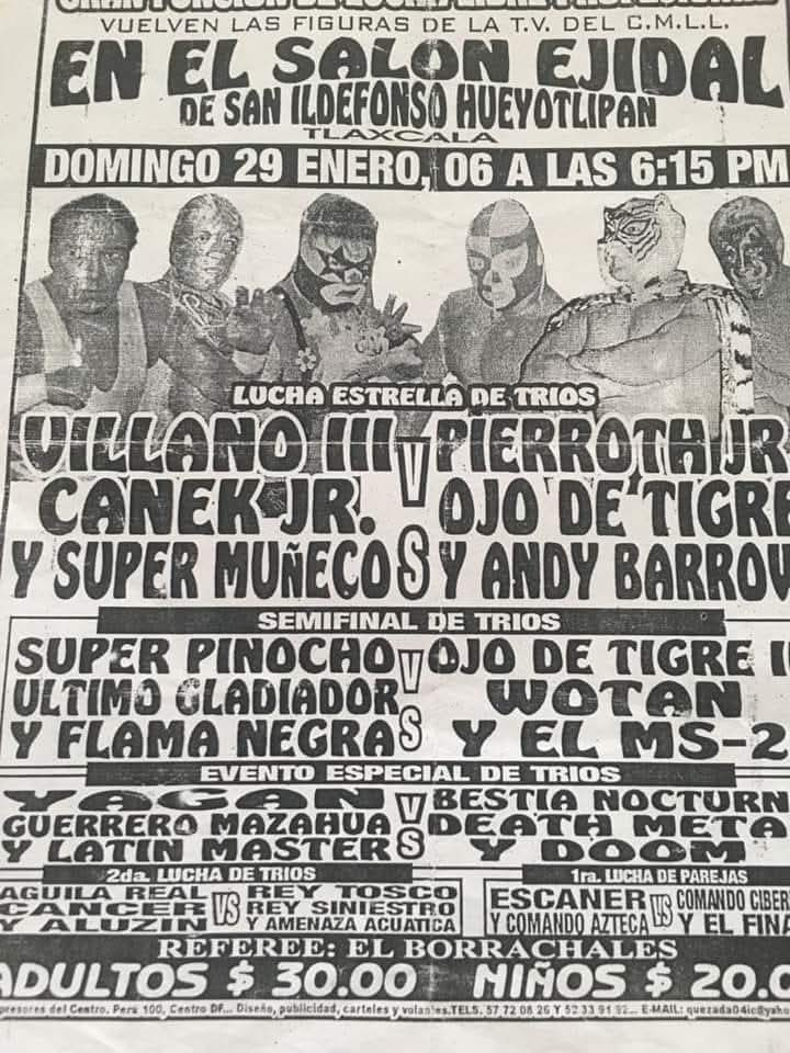 4) Canek Jr., Súper Muñeco, Villano III vs Andy Barrow, Ojo De Tigre, Pierroth Jr.