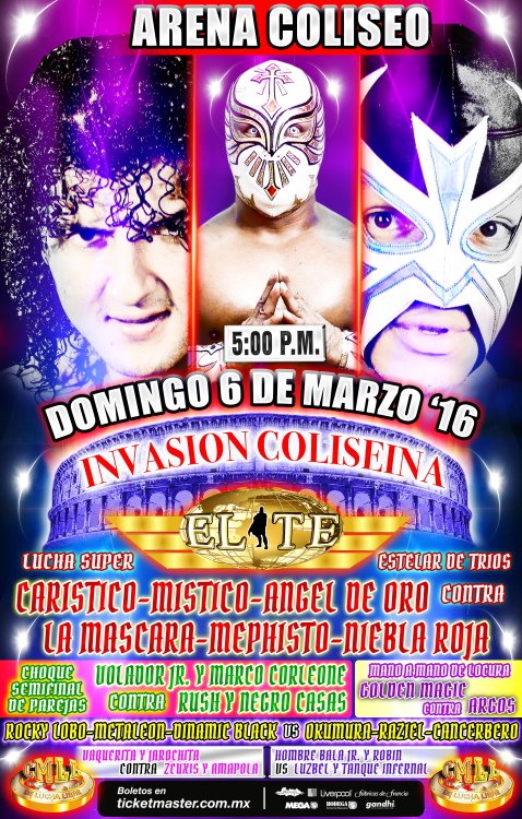 CMLL Elite (SUN) 03/13/2016 Arena Coliseo [CMLL, Kronsport, MisticieroTV (highlights), Yahoo! Deportes]