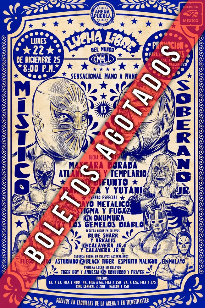 19:05. Mascara Dorada was hurt taking a Soberano powerbomb, though he wrestled the next day. Soberano reversed a La Mistica into a Fire Driver for the win, then challenged him for the MEX LH title. Mistico accepted for next Friday.
