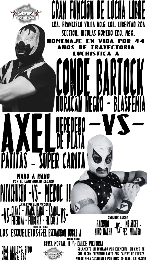 6) Axel, Paritas, Súper Carita vs Blasfemia, Conde Bartock, Huracán Negro