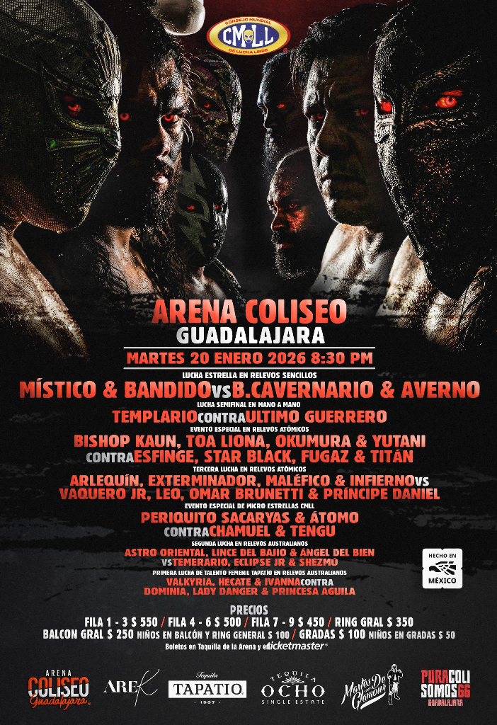 CMLL (TUE) 01/20/2026 Arena Coliseo Guadalajara [Arena Coliseo Guadalajara, CMLL, Fuego en el Ring, Mas Lucha]