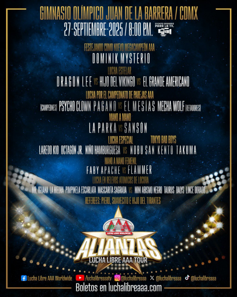 AAA TV (SAT) 09/27/2025 Gimnasio Olímpico Juan de la Barrera, Ciudad de México, Distrito Federal [@CarlosGarciaOf, AAA, El Sol de Toluca, thecubsfan]