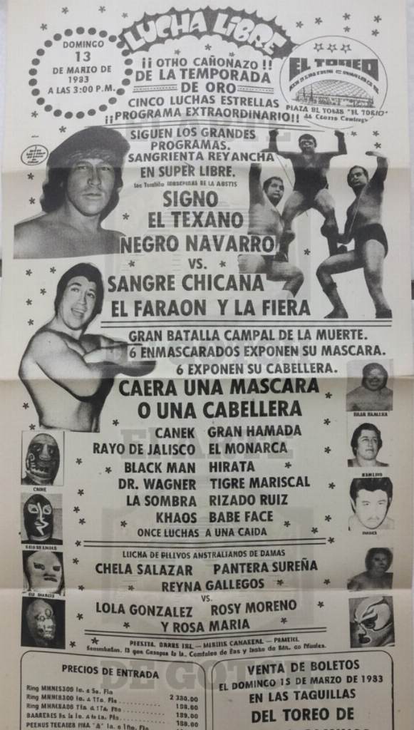 MORA (SUN) 02/27/1983 Toreo de Cuatro Caminos, Naucalpan, Estado de México [Box y Lucha 1579, Matt Farmer]