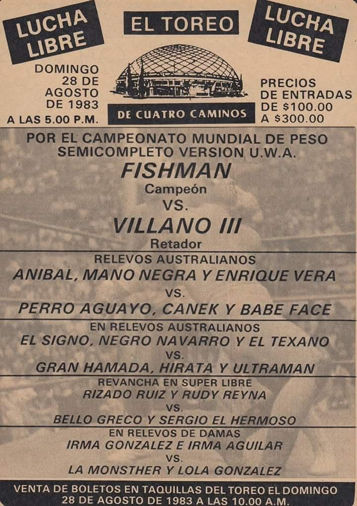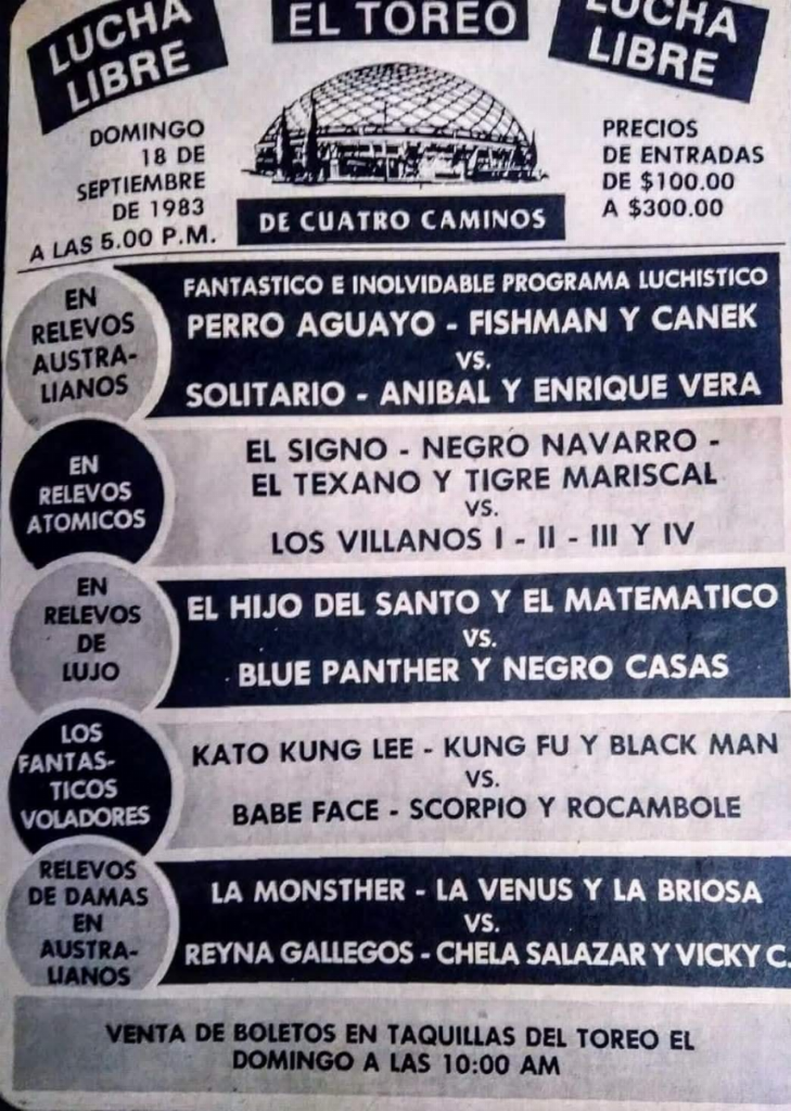 MORA (SUN) 10/30/1983 Toreo de Cuatro Caminos, Naucalpan, Estado de México [Arena 1315, Matt Farmer, Pasion Luchistica]