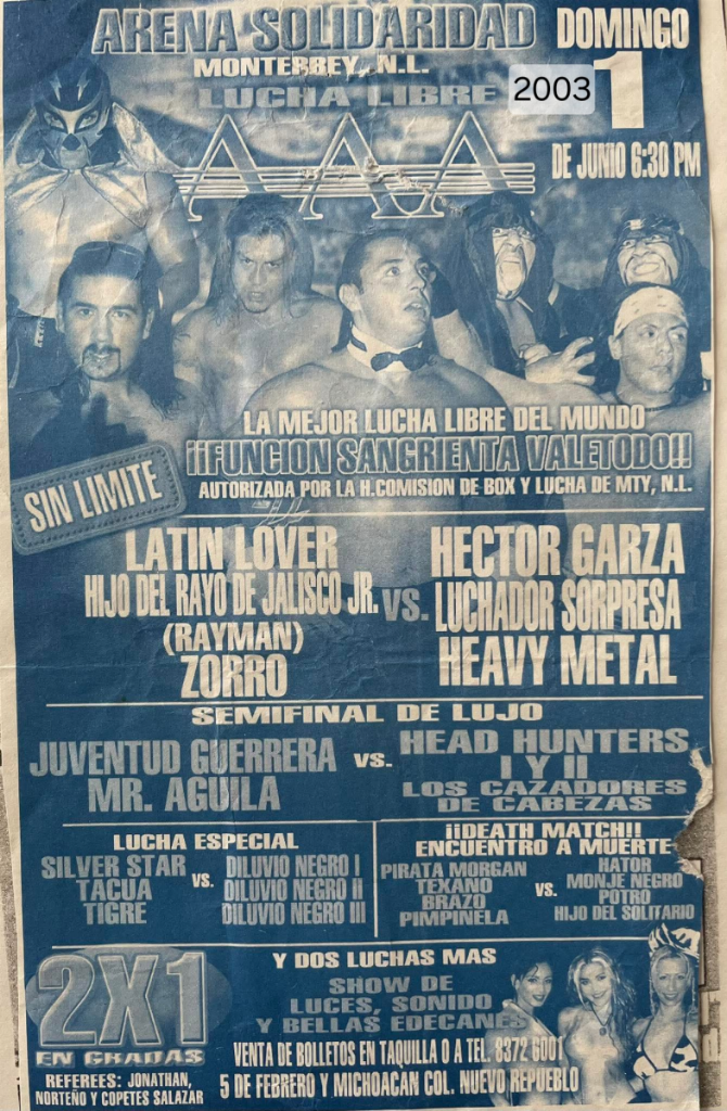 3) El Hijo del Solitario, Hator, Monje Negro Jr., Potro Jr. b El Brazo, Mosco de la Merced I, Pirata Morgan, Texano
