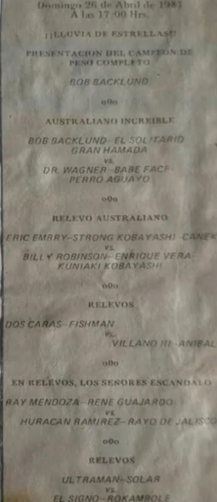 4) Billy Robinson, Bob Backlund, Gran Hamada b Babe Face, Dr. Wagner, Perro Aguayo