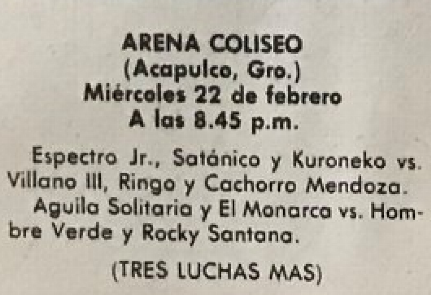 EMLL (WED) 02/22/1984 Arena Coliseo Acapulco, Acapulco, Guerrero [Box y Lucha 1628, imgur]