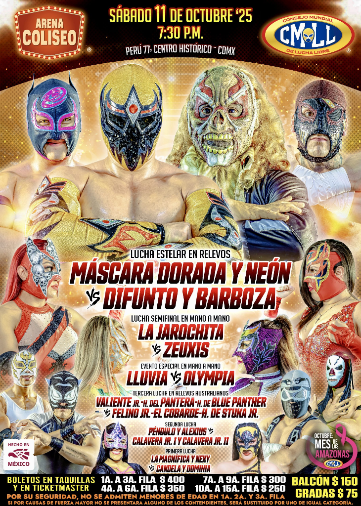 CMLL (SAT) 10/11/2025 Arena Coliseo [CMLL, Estilo Lucha Libre, Estrellas del Ring]