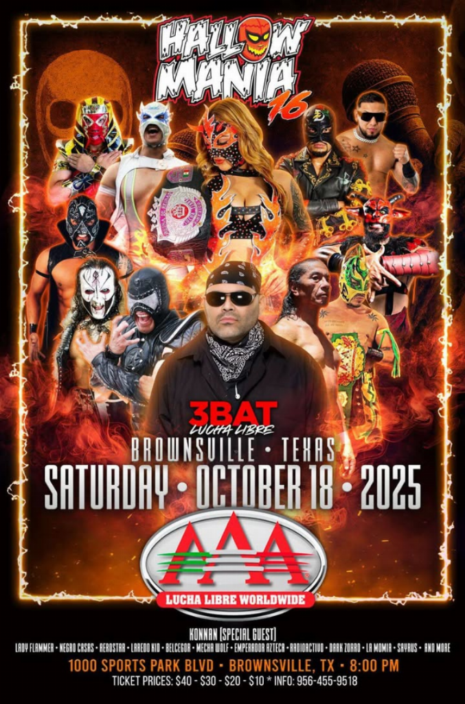 AAA (SAT) 10/18/2025 Brownsville, Texas 1) Lady Flammer vs Negro Casas, Aerostar, Laredo Kid, Belcegor, Mecha Wolf, Emperador Azteca, Radioactivo, Dark Jorbo, La Momia, Sayrus, ?