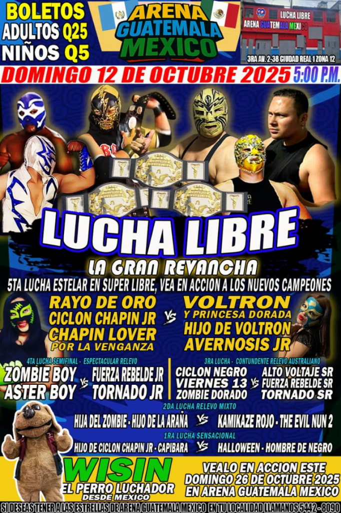 5) Chapín Lover, Ciclón Chapin Jr., Rayo de Oro vs Avernosis Jr., Hijo de Voltrón, Voltron [supre libre]