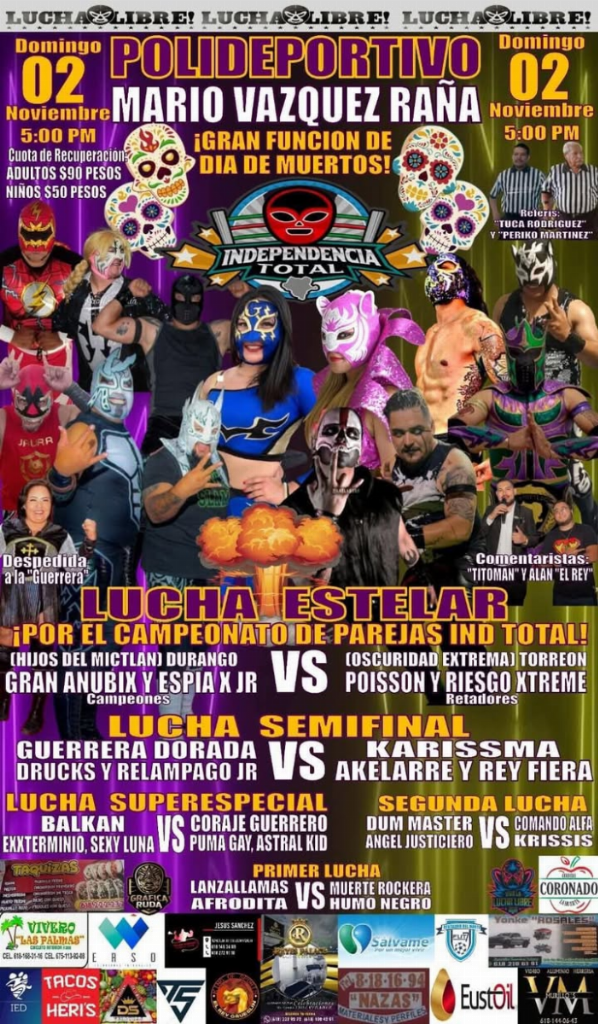 4) Drucks, Guerrera Dorada, Relámpago Jr. vs Akelarre, Karisma, Rey Fiera