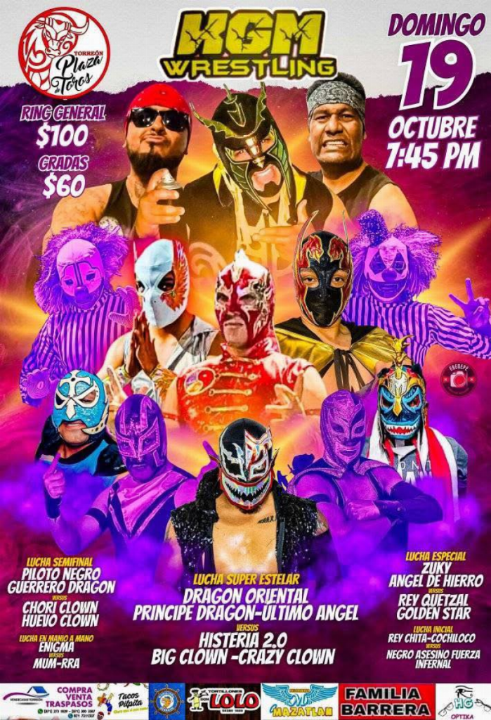 1) Dragón Oriental, Príncipe Dragón, Último Ángel vs Big Clown, Crazy Clown, Histeria 2.0