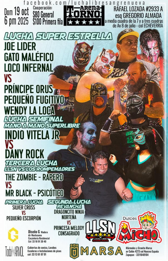 5) Gato Malefico, Joe Lider, Loco Infernal vs Pequeño Fugitivo, Príncipe Orus, Wendy La Loca