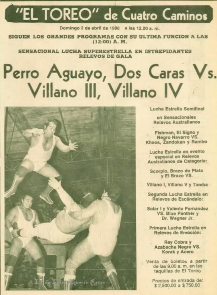 5) Dos Caras & Perro Aguayo vs Villano III & Villano IV