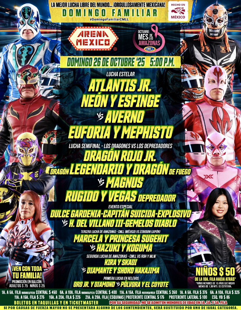 6) Atlantis Jr., Esfinge, Neón vs Averno, Euforia, Mephisto