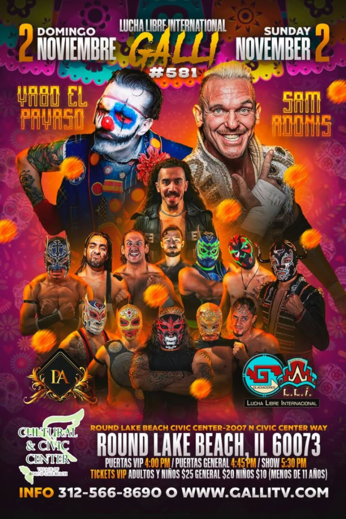 GALLI (SUN) 11/02/2025 Round Lake Civic Center, Round Lake Beach, Illinois 1) ?, Sam Adonis, Yabo El Payaso vs