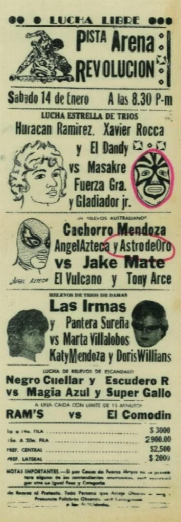 4) Ángel Azteca, Astro de Oro, Cachorro Mendoza vs Jake Mate, Tony Arce, Vulcano
