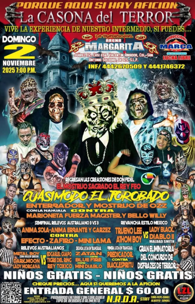 3) Dark Moon, Lady Morgana, Metal Boy vs Edgar El Guapo, Rey Toxico, Tigre del Ring