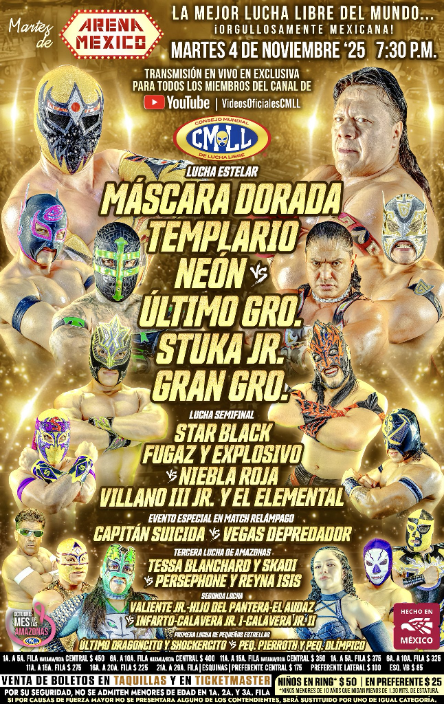 6) Máscara Dorada, Neón, Templario vs Gran Guerrero, Stuka Jr., Último Guerrero