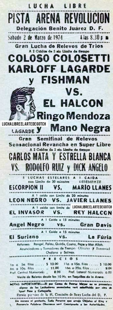 EMLL (SAT) 03/02/1974 Pista Arena Revolución [El Arte de Gotch, RB]