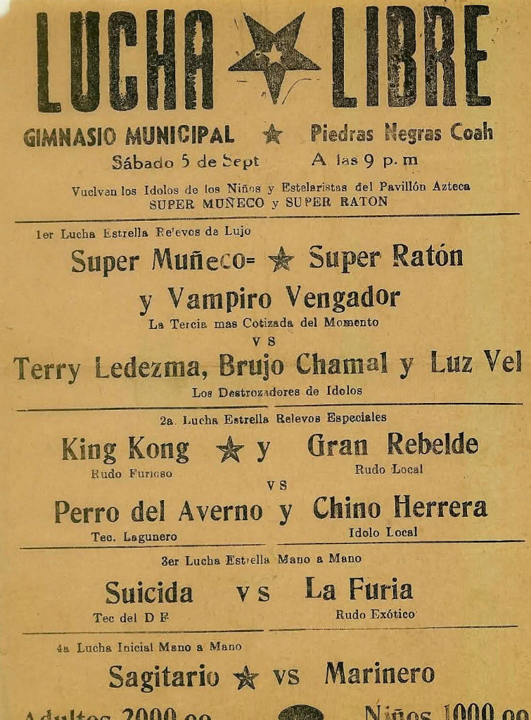 1) Súper Muñeco, Súper Ratón, Vampiro Vengador vs Brujo Chamal, Luz Vel, Terry Ledezma