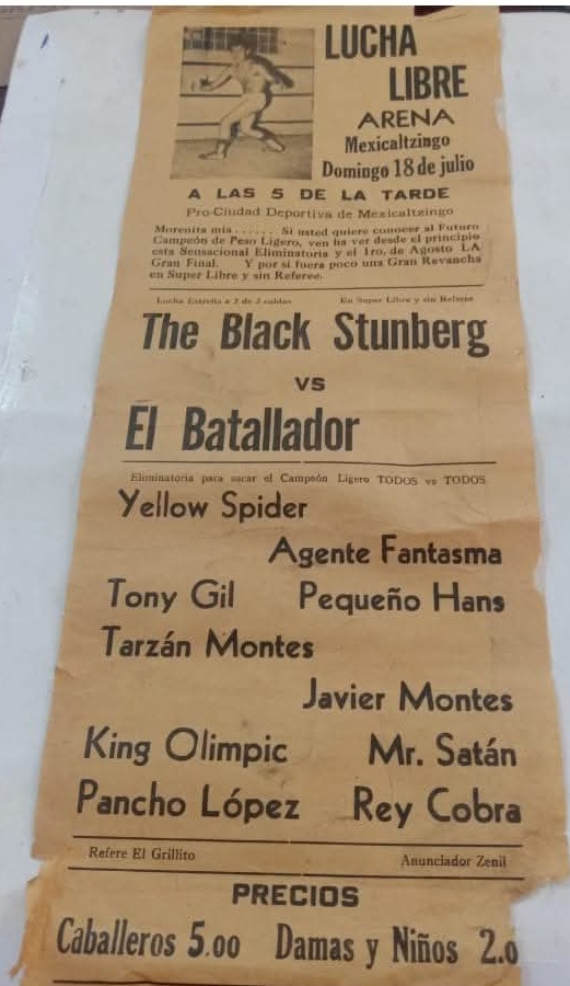 1) Yellow Spider vs Agente Fantasma, Tony Gil, Pequeño Hans, Tarzan Montes, Javier Montes, King Olimpic, Mr. Satán, Pancho Lopez, Rey Cobra