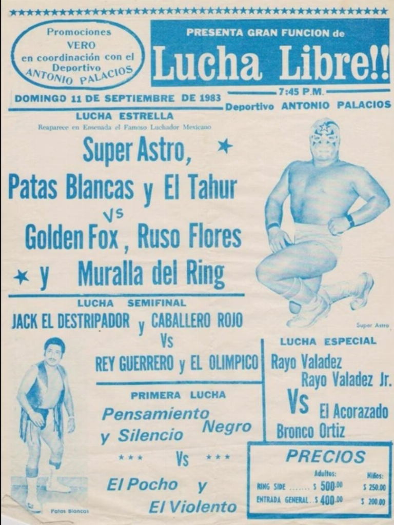 4) El Tahúr, Patas Blancas, Súper Astro vs Golden Fox, Muralla Del Ring, Ruso Flores