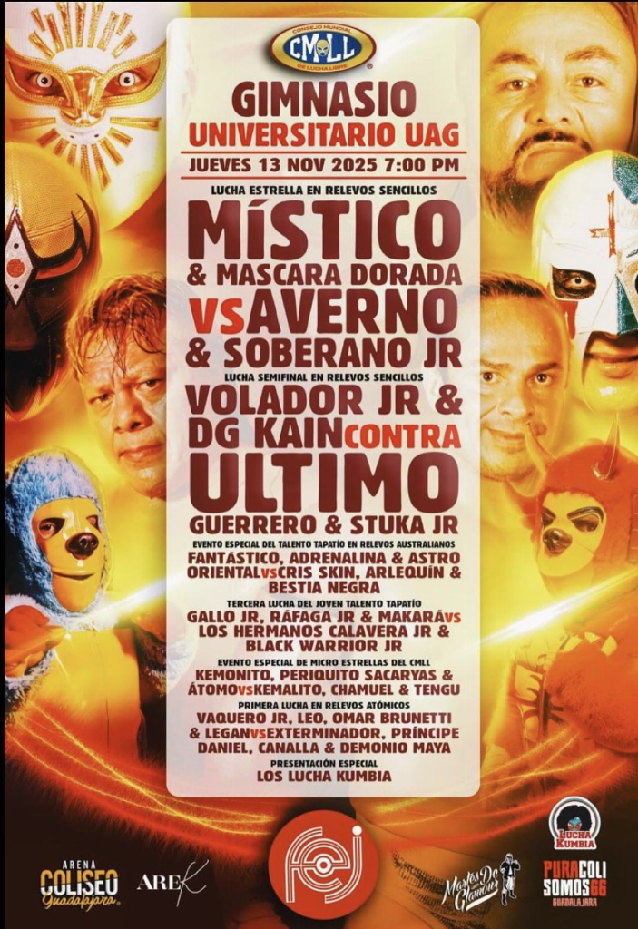 CMLL (THU) 11/13/2025 GImnasio Universitario UAG, Guadalajara, Jalisco