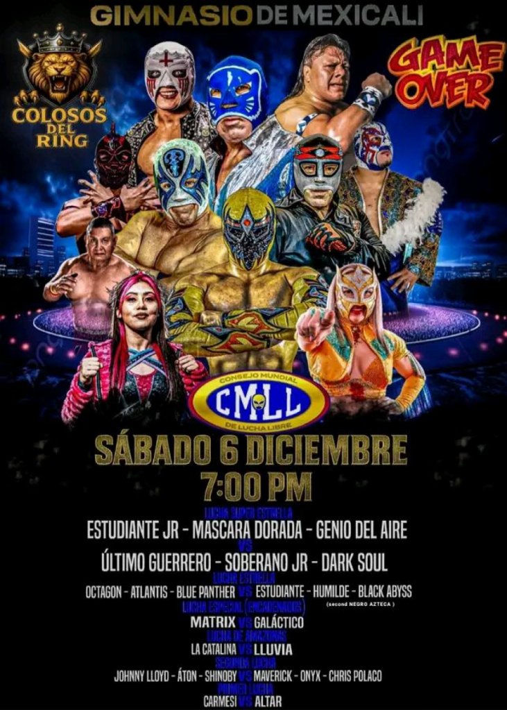 6) Estudiante Jr., Genio del Aire, Máscara Dorada vs Dark Soul, Soberano Jr., Último Guerrero