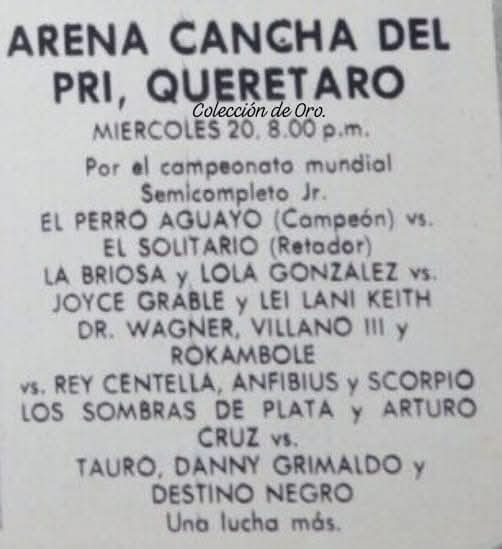 indY (WED) 06/20/1979 Arena Cancha del PRI, Querétaro, Querétaro