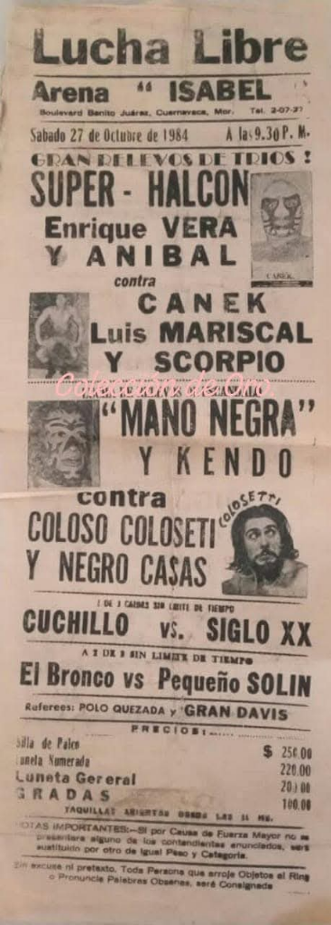 MORA (SAT) 10/27/1984 Arena Isabel, Cuernavaca, Morelos