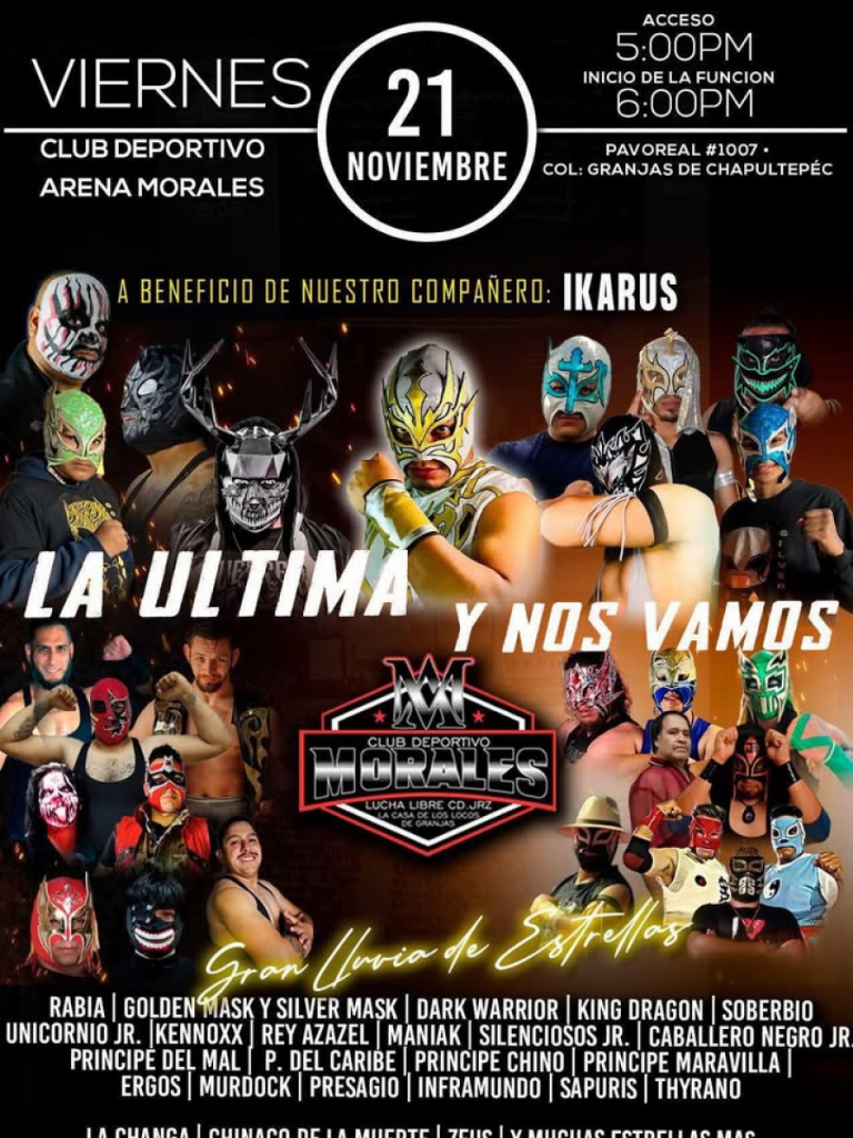 1) Rabia vs Golden Mask, Silver Mask, Dark Warrior, King Dragón, Soberbio, Unicornio Jr., Kennoxx, Rey Azazel, Maniak, Silenciosos Jr., Caballero Negro Jr., Príncipe Del Mal, P. Del Caribe, Príncipe Chino, Príncipe Maravilla, Ergos, Murdock, Presagio, Inframundo, Sapurio, Thyrano, La Changa, Chicano De La Muerte, Zeus