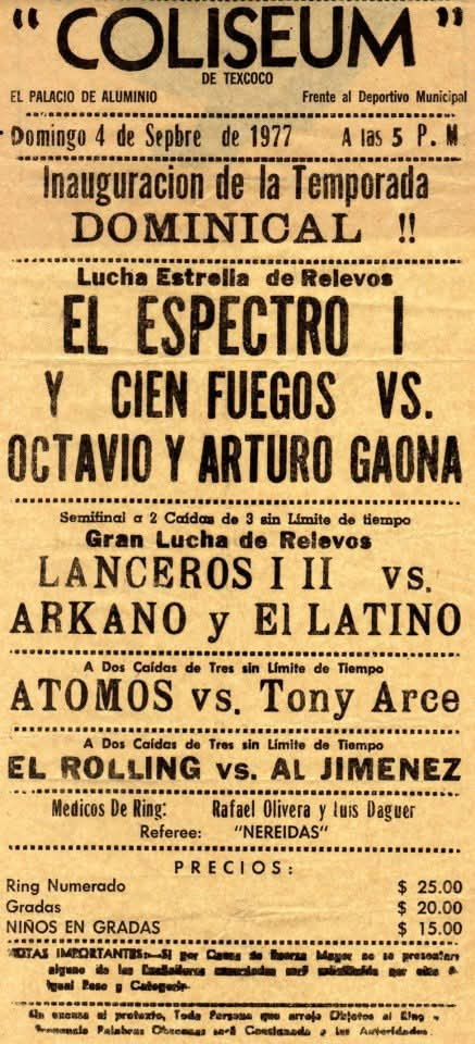Indy (SUN) 09/04/1977 Coliseum de Texcoco, Texcoco, Estado de México